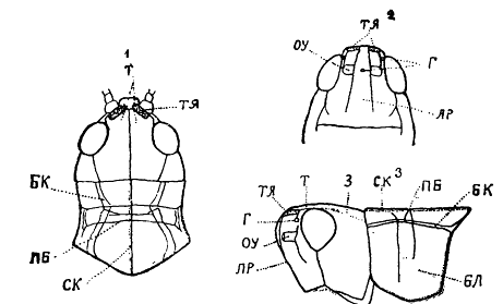 Голова овальной или конической формы (рис. 1 - 2). Передняя поверхность