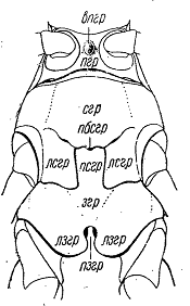 сложными глазами, располагается вдавленная линия, идущая от нижнего края глаза