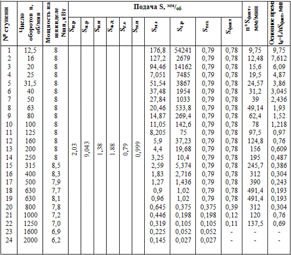 7 = 2 мин;= 63 об/мин; S8 = 1 мм/об;t0 8 = 1,59 мин;= 80 об/мин; S9 = 1