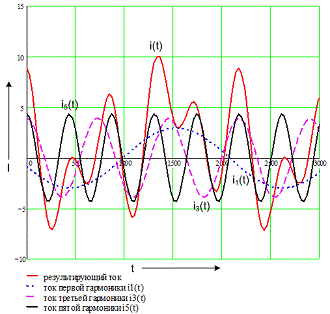 кривую тока, полученную в результате графического сложения отдельных гармоник.