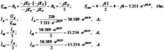 в табл. 2., выбрать симметричную трёхфазную электрическую цепь, найти токи в