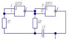 того, щоб він не впливав на розрахункову частоту, номінал резистора R1 обираємо