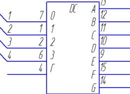 індикаторах реалізовано 7 сегментів, тому на вхід індикатора необхідно подавати