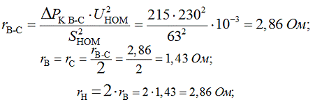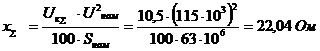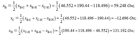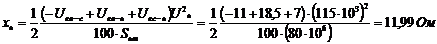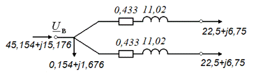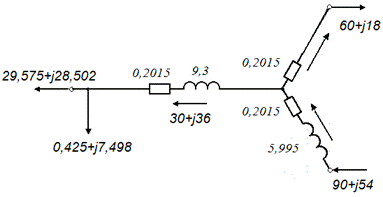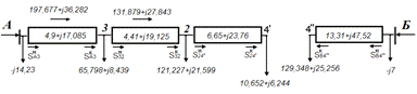 цифровые значения активных и реактивных сопротивлений. Стрелками, отходящими от