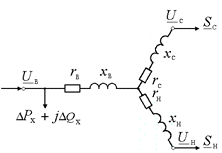 мощности в обмотках высшего, среднего и низшего напряжения трансформатора или