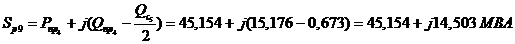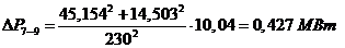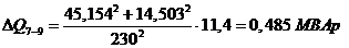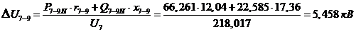 напряжения в узле 9 с учетом коэффициента трансформации: