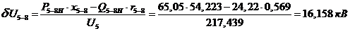 напряжения в узле 8 с учетом коэффициента трансформации:
