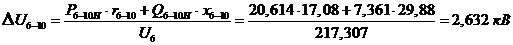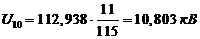 напряжения в узле 10 с учетом коэффициента трансформации:
