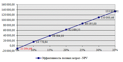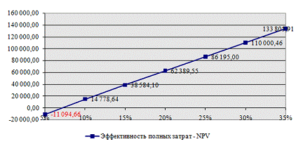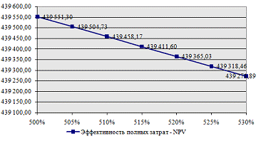 Чистый дисконтированный доход (NVP) за период равный 5 годам составит 443,28 тыс. руб., что подтверждает