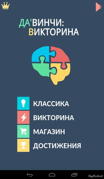 вікторини "Загадки ДаВинчи" не оснащена формою вибору складності