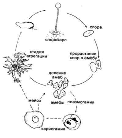 более дифференцированное плодовое тело - сорокарп. При этом миксамебы,