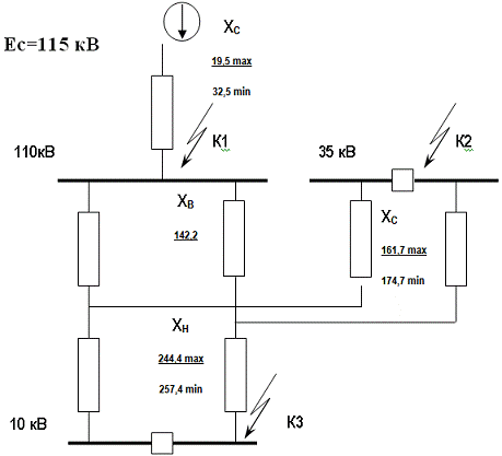короткого замыкания на стороне НН (в точке К3,приведённое к ВН):