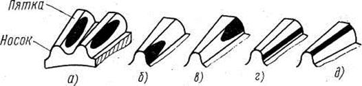 конических зубчатых колес редуктора фрезы ФБН-1,5: а - правильное, б, в, г, д -