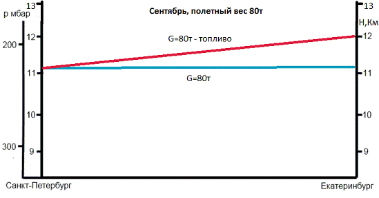 фактической высоты полета в метрах для tср сентября в Санкт-Петербурге и Москве