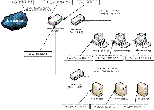 можно обеспечить доступ из глобальной сети к серверам (MAIL, WWW, FTP и др.)