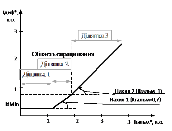 диференційного струмового захисту пристрою RET670, на основі яких побудовано