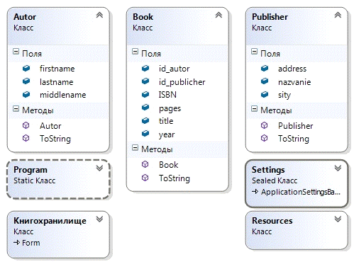 Book и двух дополнительных Autor и Publisher. В данном классе имеются шесть