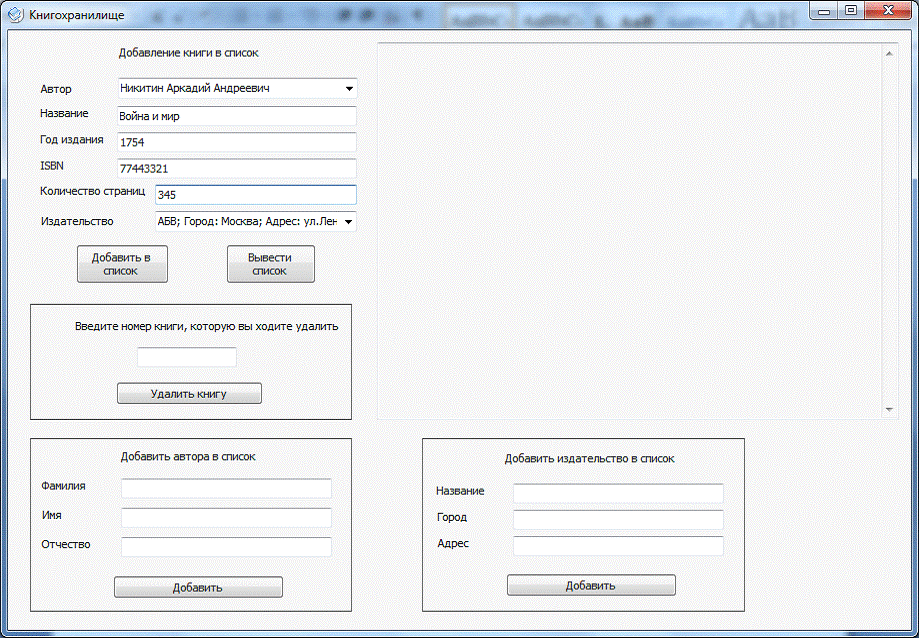 книгохранилище библиотеки. Программа должна обеспечивать ввод данных,