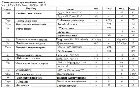 на діапазон частот від -55°С до +125°С, крім того він має I2C інтерфейс.