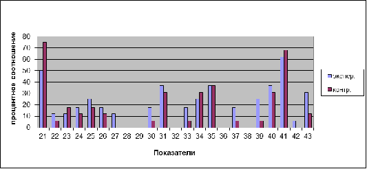 выделены показатели, которые имеют в экспериментальной группе высокие значения,