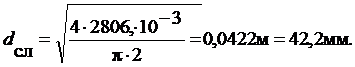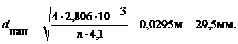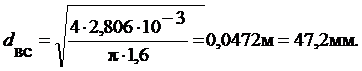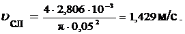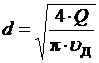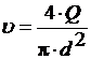 рекомендуемое значение скорости , внутренний диаметр рассчитывают