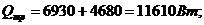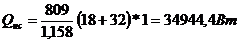 Суммарная тепловая мощность, поступающая в помещение цеха