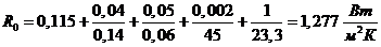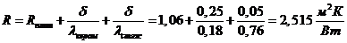= 0,48 + 0,115 + 0,043 = 0,638 м2К/Вт;