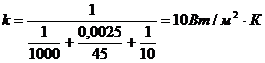 Расчет коэффициента теплоотдачи k, Вт/м2·К.,