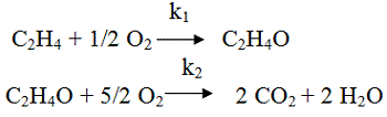 что в газе, поступающем на окисление, одновременно присутствуют и этилен и