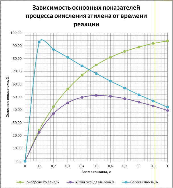 оС, содержание этилена 4%, содержании кислорода в поступающей смеси от 7 - 9 %