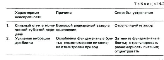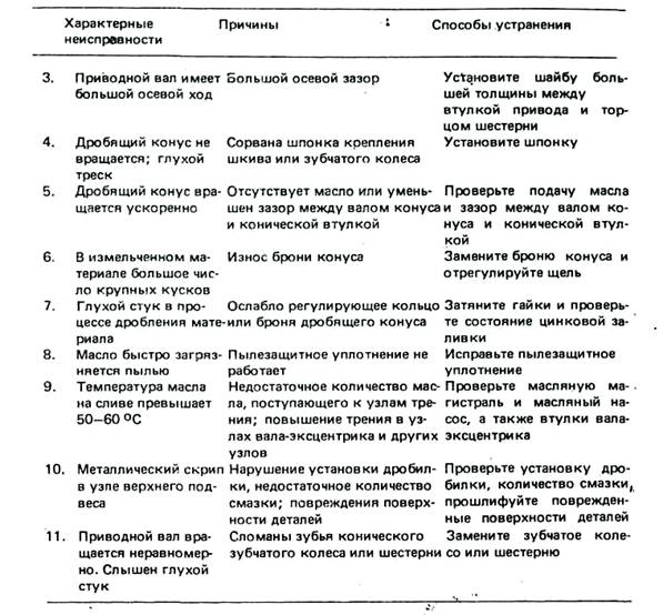 характерных неисправностей дробилки и способы их устранения приведены в табл.