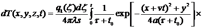 вдоль оси х в течение времени t с постоянной скоростью v и вся его мощность q сосредоточена в плоскости