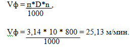 Фактическая скорость резания определяется по