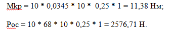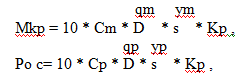 Крутящий момент Мкр и осевая сила резания Ро