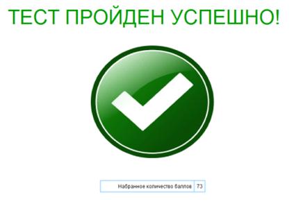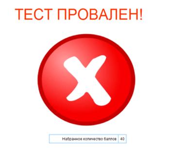 После прохождения теста пользователь видит количество набранных баллов,