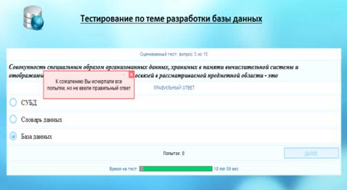 После изучения теории обучаемый приступает к тестированию. В тестировании
