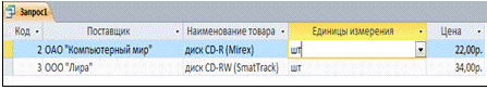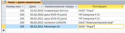 функцией ИЛИ, то в результате выполнения запроса на экране появятся записи,