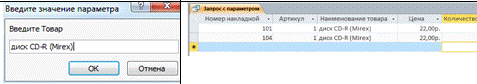 окно Введите Товар с полем для ввода данных (рис. 9 а). Результат