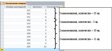 В таблице одинаковые значения столбца Номер накладной могут повторяться