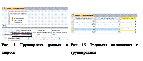 в запросе на рис. 13, справа, фигурными скобками, выделены записи, для которых