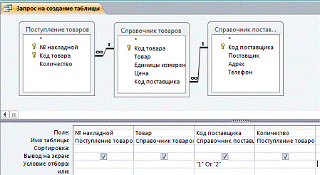 Рис. 27. Запрос на создание таблицы в режиме конструктора