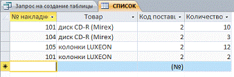таблицу в базе данных, содержащую поля № накладной, Товар, Поставщик,
