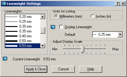 · Lineweight - вес