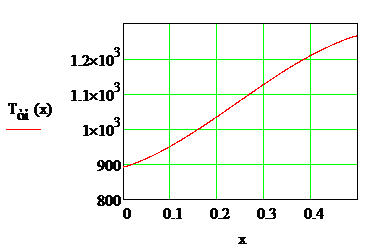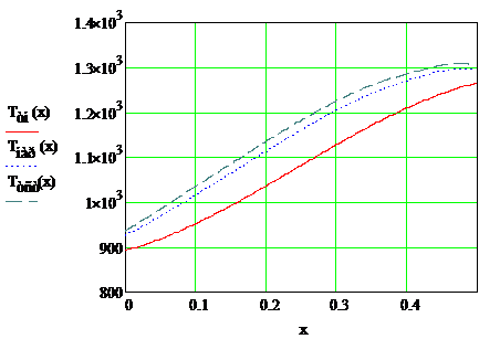 Распределение температуры по длине наиболее нагруженного