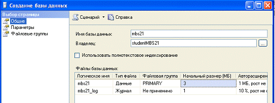 «Создать базу данных…» (рис. 4). Назовем базу данных по индексу группы - mbs21.