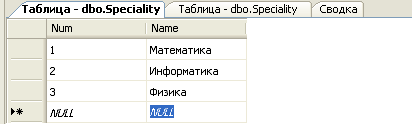 (внешний ключ ссылается на первичный ключ таблицы Speciality)