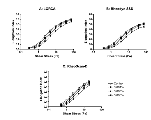 измерены при девяти сдвиговых напряжениях: 0.3-75 Па.SSD (Myrenne GmbH,
