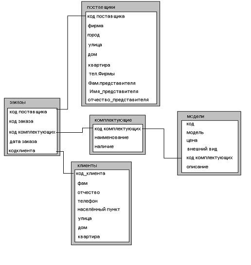 В данной БД необходимо хранить информацию о моделях, заказах, поставщиках,