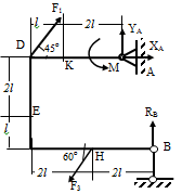 Реакции связей в точках А и В, вызываемые заданными нагрузками.
