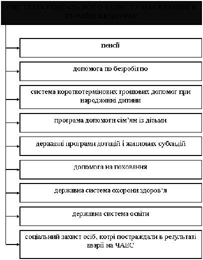 захисту виконує такі функції: соціальні виплати і соціальне обслуговування